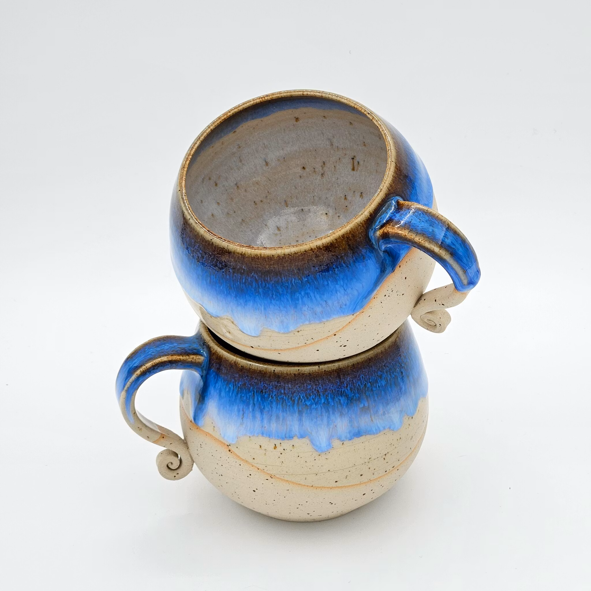 Kaffekopp, ca 3 dl, Blå med mörk kant på lavaprick-lera 250:- I lager Lägg i korgen Produktbeskrivning Höjd: ca 8-9 cmStörsta bredd: ca 9-10 cmKan diskas i maskin.