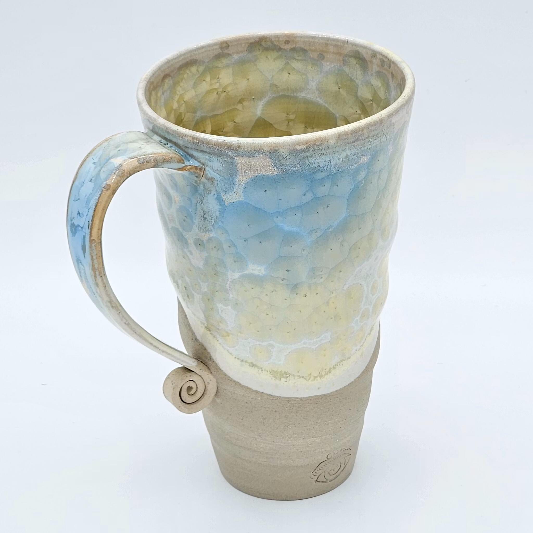 Öl- och lattemuggar, ca 5 dl, Titan-Blå kristallglasyr 450:- Produkten är tyvärr slut i lager. :( Produktbeskrivning Fler kommer!Höga öl-/kaffelattemuggar, ca 4,5 dl.Höjd: ca 16 cmKan diskas i maskin.