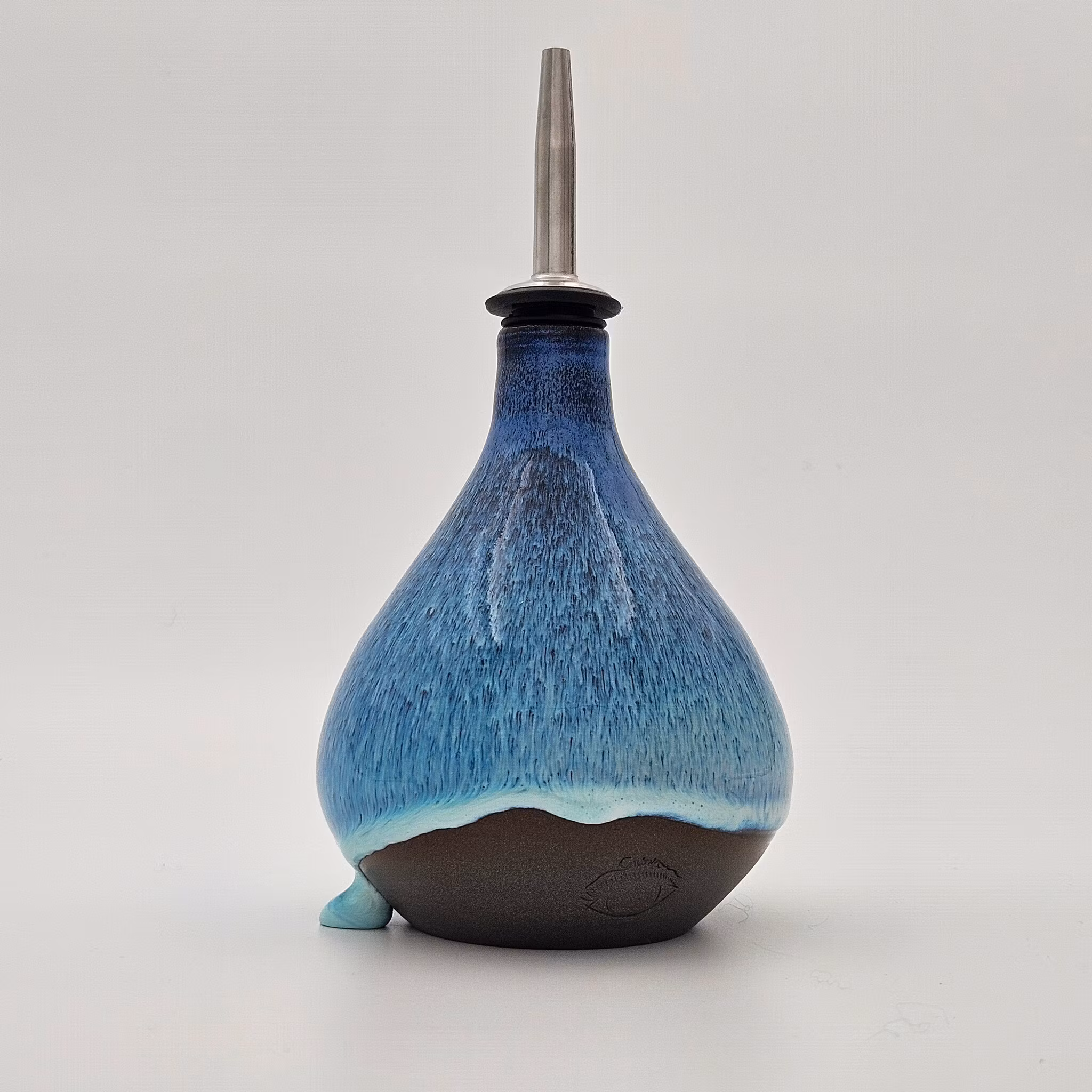 Oljeflaska, 13 cm, Blå-Vit 400:- Produkten är tyvärr slut i lager. :( Produktbeskrivning Hällpip i metall. Finns endast i ett exemplar.Höjd: ca 13 cm, 19 cm med hällpipStörsta bredd: ca 10 cmHanddiskas helst.