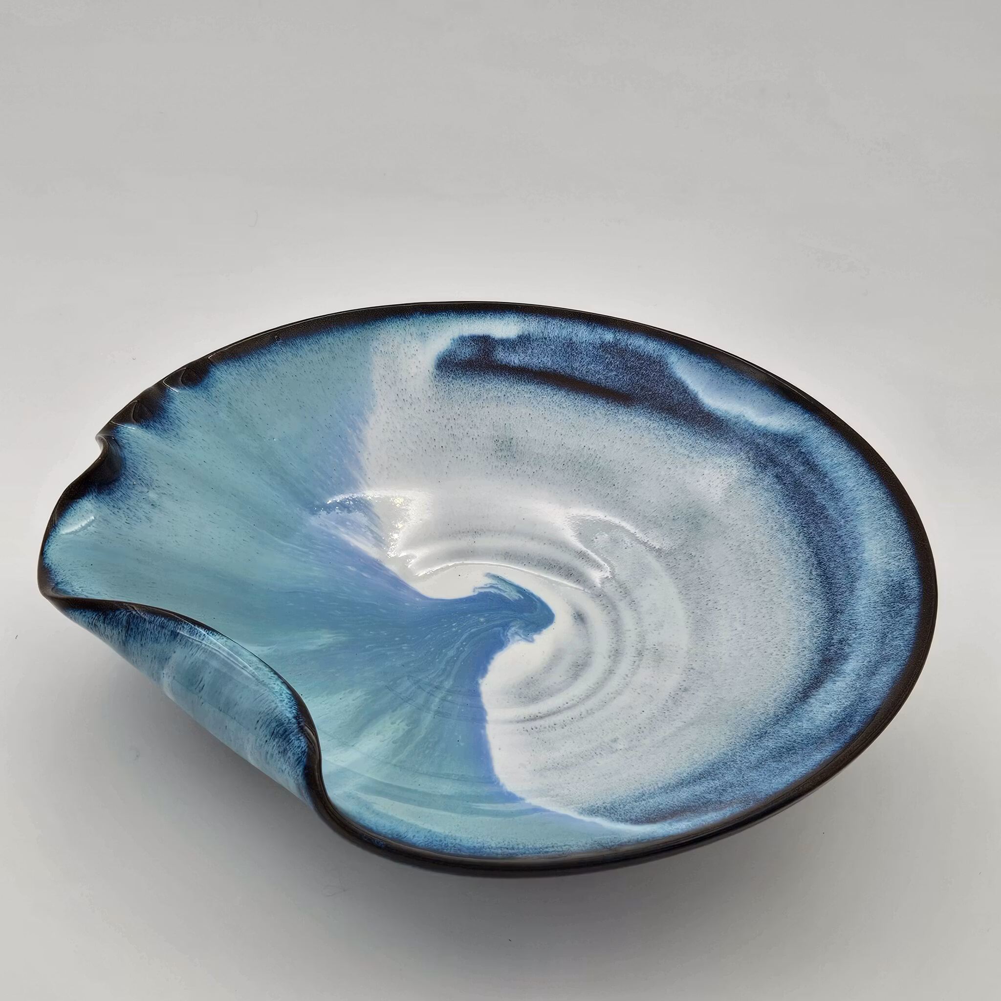 Skål Våg, 29 cm, Blågrön-Vit 800:- Produkten är tyvärr slut i lager. :( Produktbeskrivning Uppläggningsfat i Våg-serien. Finns endast i ett exemplar.Höjd: ca 8 cmStörsta bredd: ca 29 cmHanddiskas helst.
