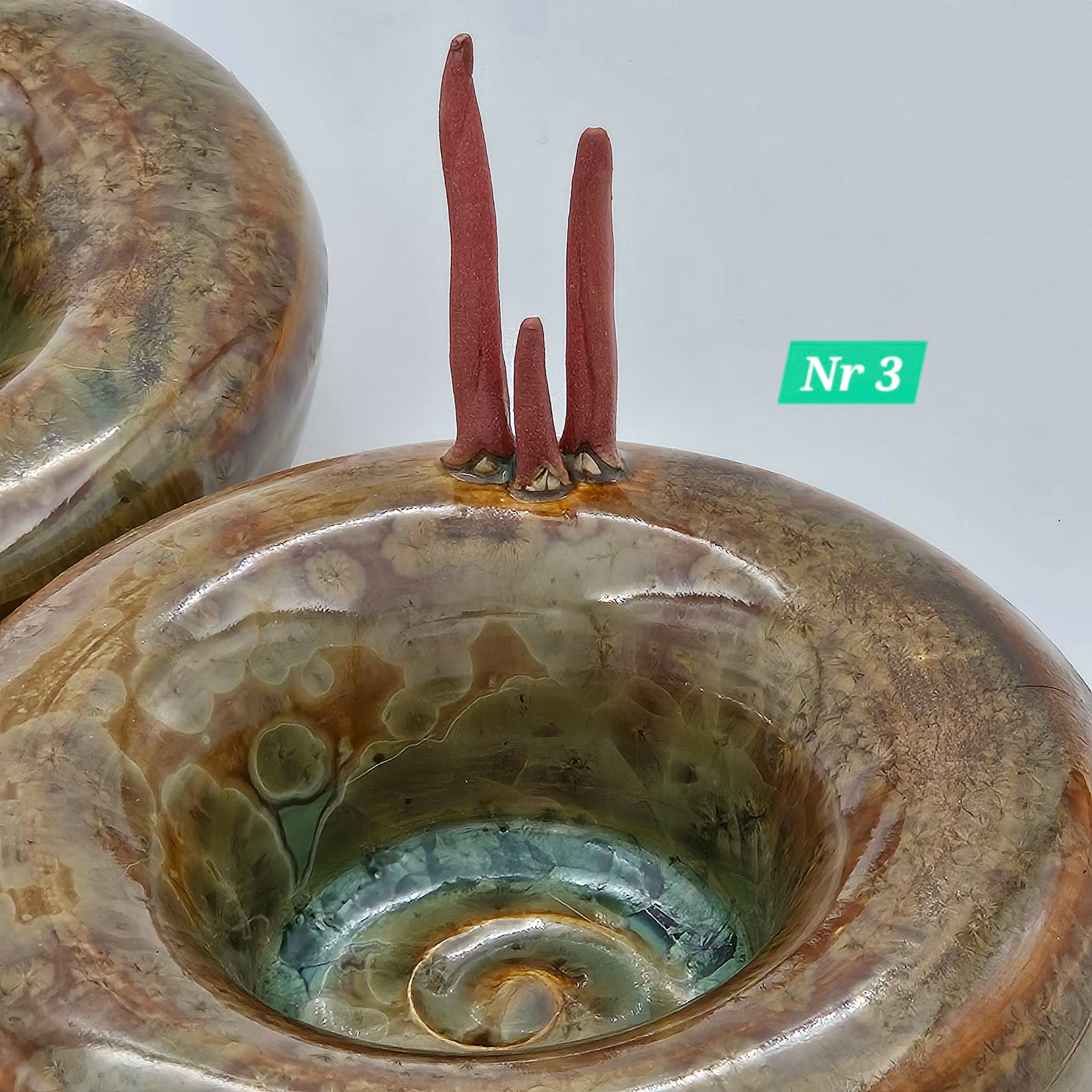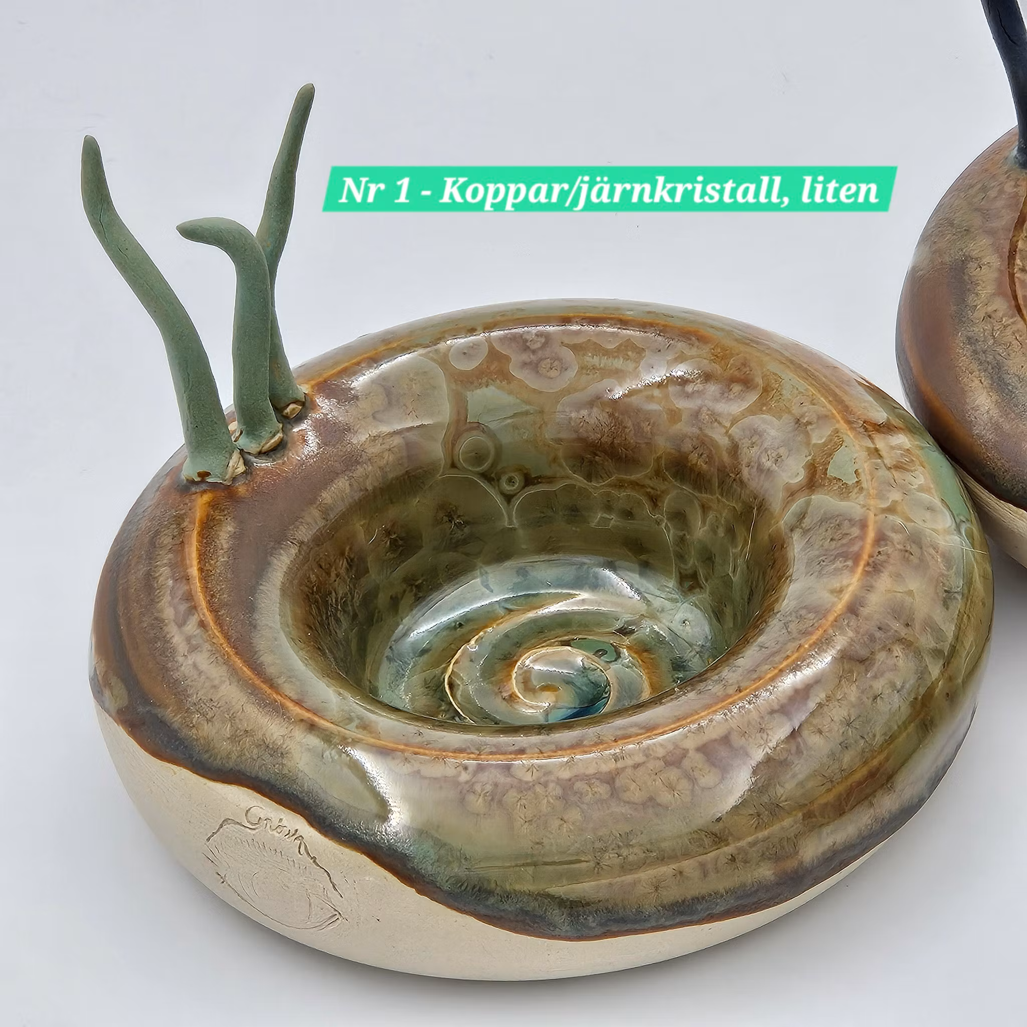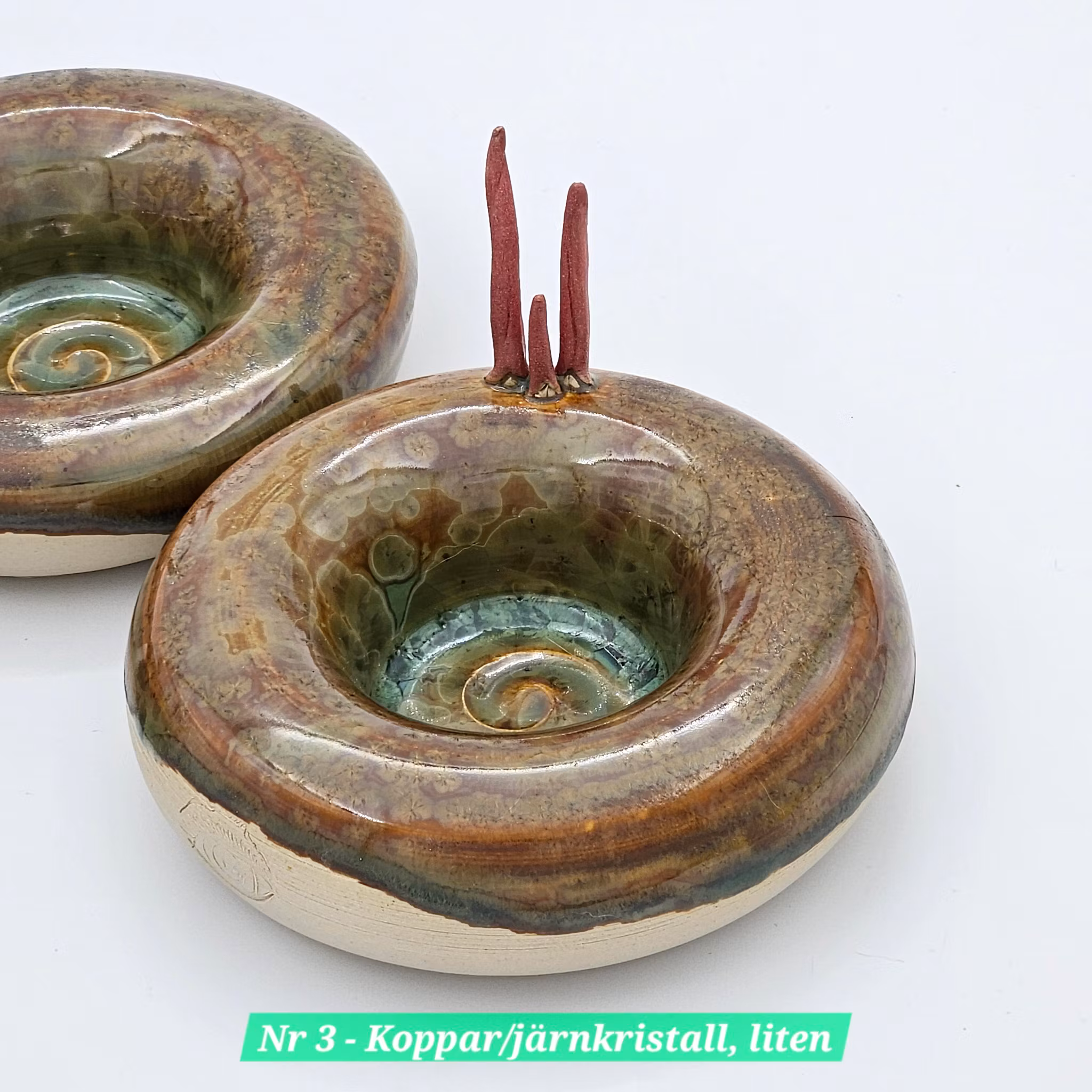 Ljusfat med Tomtenissar, små, Koppar-Järn kristallglasyr