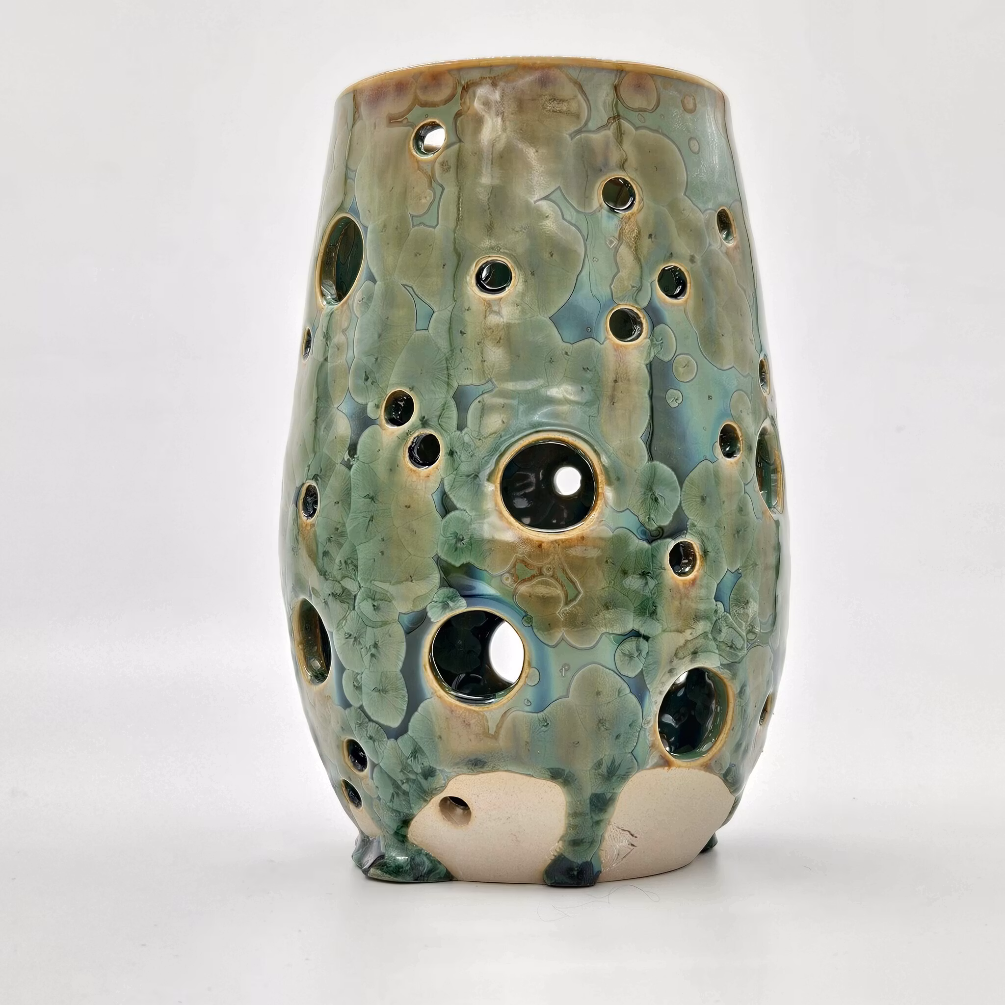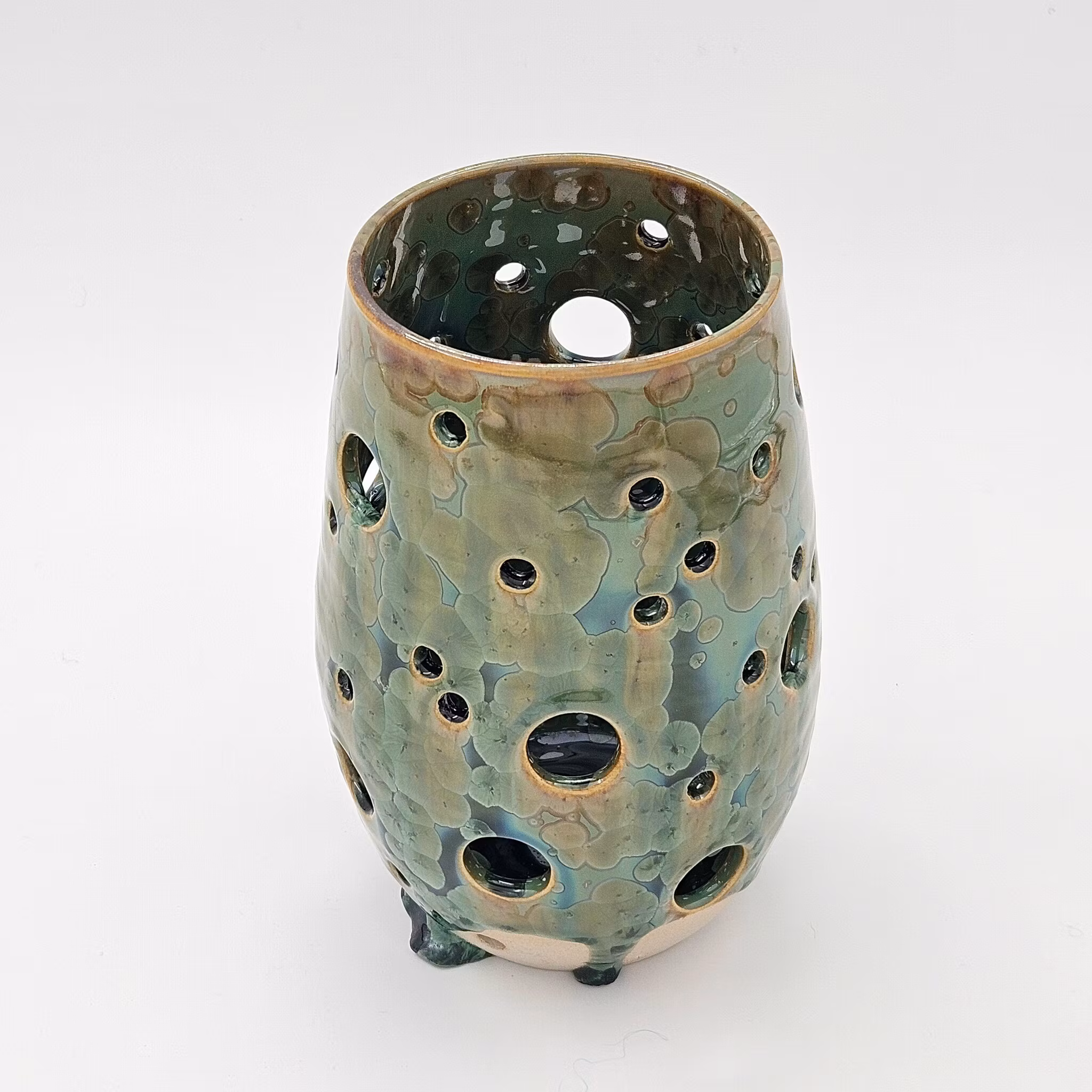 Ljuslykta Stor, Koppar-Järn kristallglasyr på vit lera 650:- I lager Lägg i korgen Produktbeskrivning Passar för stora och små värmeljus. Höjd: ca 18 cmStörsta bredd: ca 14 cm