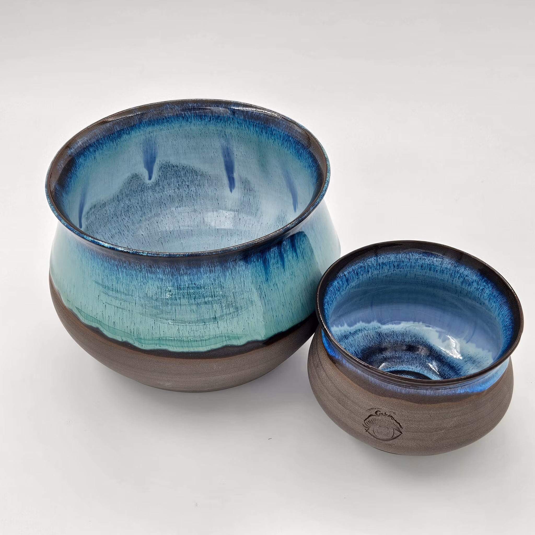 Stor urna/vas, 19 cm, Turkos 500:- I lager Lägg i korgen Produktbeskrivning Stora urnan på bilden. Finns endast i ett exemplar.Höjd: ca 12 cmStörsta bredd: ca 19 cmHanddiskas helst.