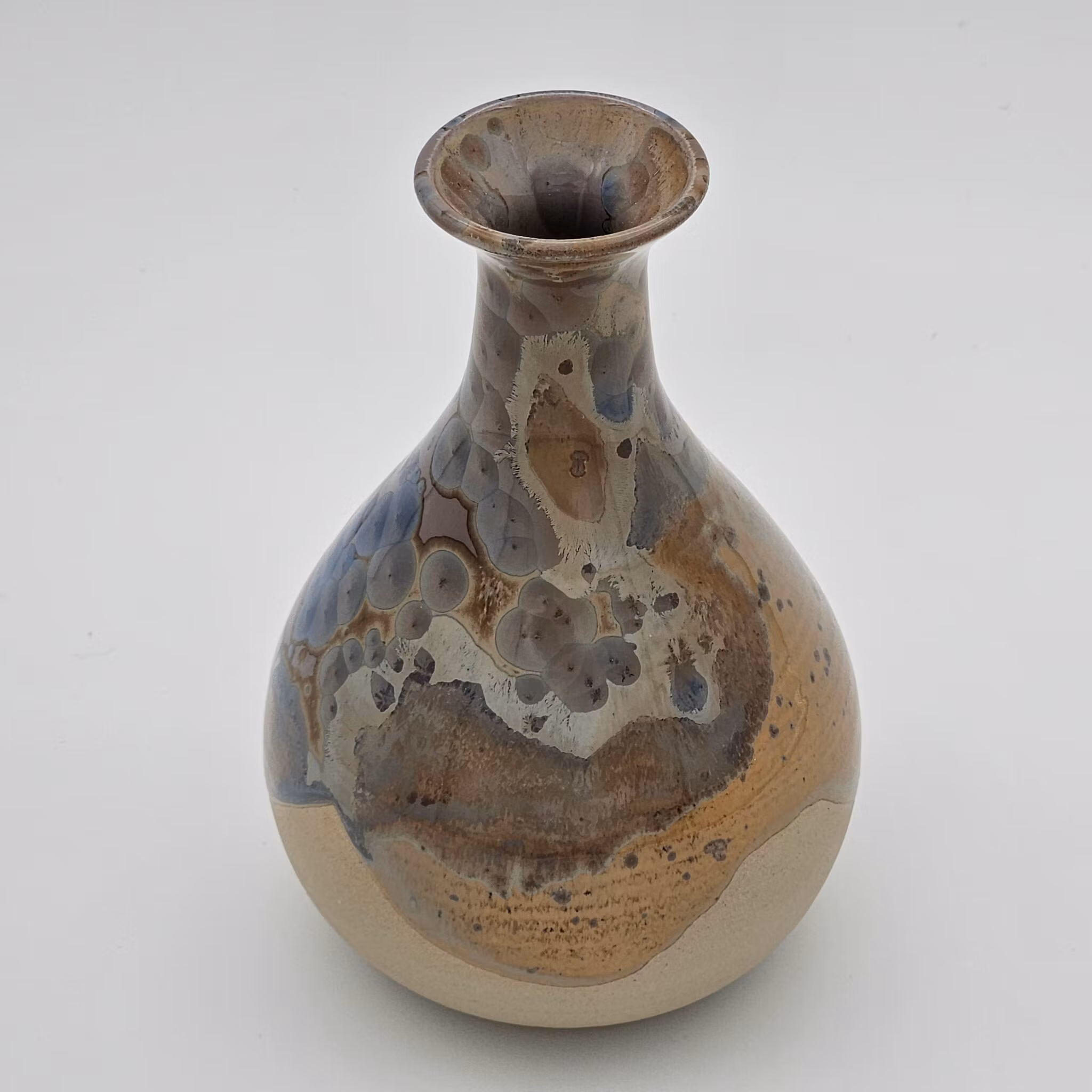 Vas med Ljusblå-Brun kristallglasyr 300:- I lager Lägg i korgen Produktbeskrivning Finns endast i ett exemplar.Höjd: ca 14 cmHanddiskas helst.
